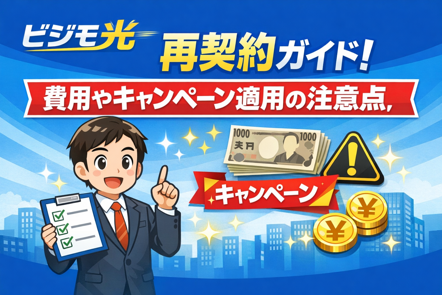 ビジモ光の再契約ガイド!費用やキャンペーン適用の注意点 公開日:2026年2月24日 未分類 一度は解約したけれど、やっぱり今の回線に満足できなくてビジモ光の再契約を考えている。そんなタイミングってありますよね。でも、いざ戻ろうとすると、以前と同じようにキャンペーンが使えるのか、ビジモ光の解約金がいくらだったか、 […] 続きを読む